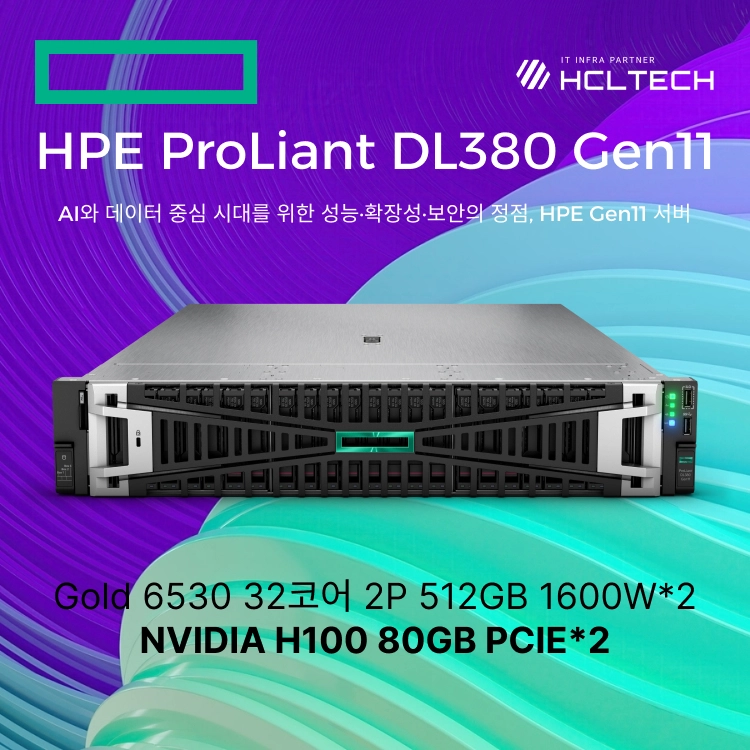 HPE ProLiant DL380 Gen11 Gold 6530 32코어 2P 512GB 1600W*2 NVIDIA H100 80GB PCIE*2