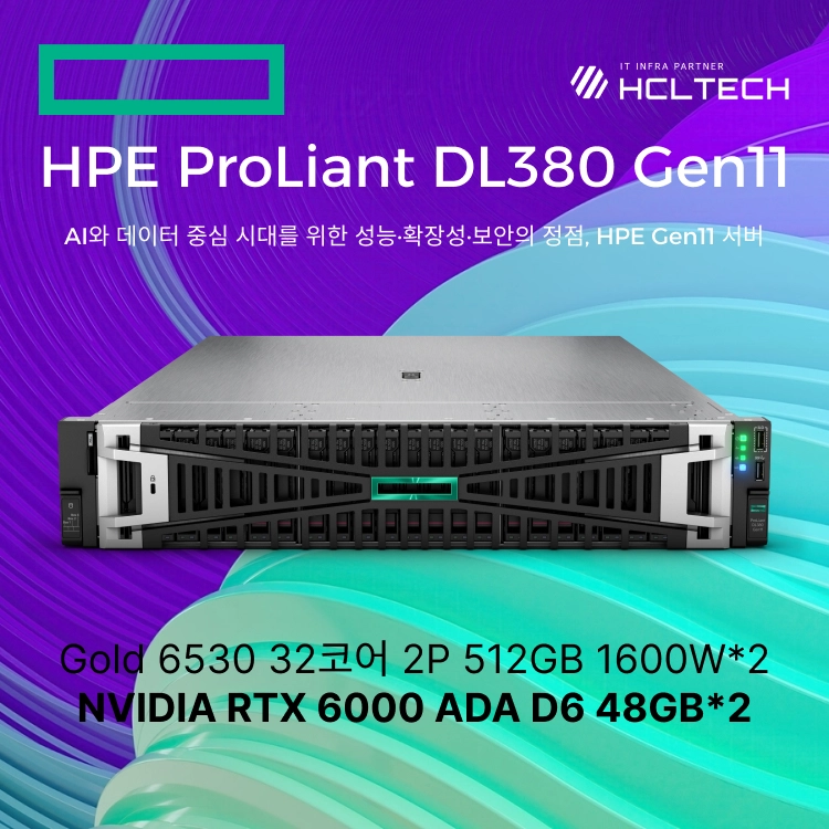 HPE ProLiant DL380 Gen11 Gold 6530 32코어 2P 512GB 1600W*2 NVIDIA RTX 6000 ADA D6 48GB*2