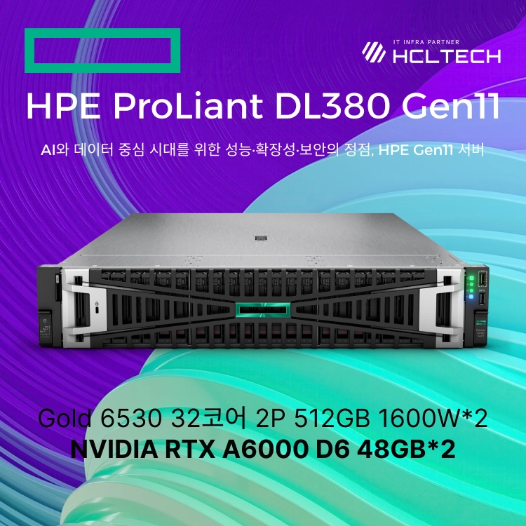 HPE ProLiant DL380 Gen11 Gold 6530 32코어 2P 512GB 1600W*2 NVIDIA RTX A6000 D6 48GB*2