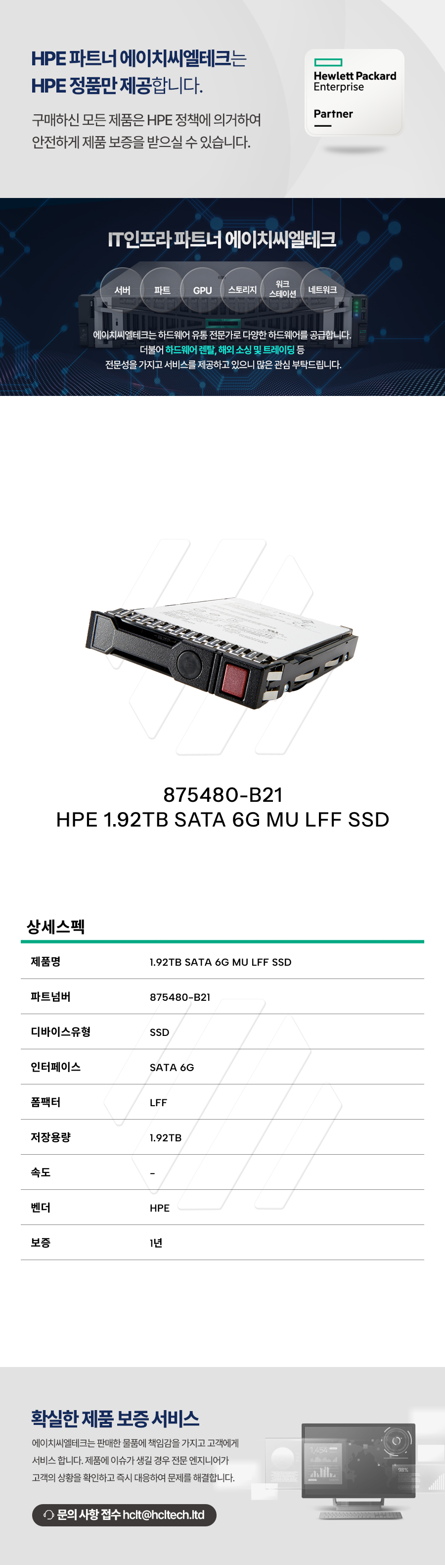 파트 SSD/HDD HPE Gen10~8 1.92TB 6G 신품 LFF(3.5인치) SATA