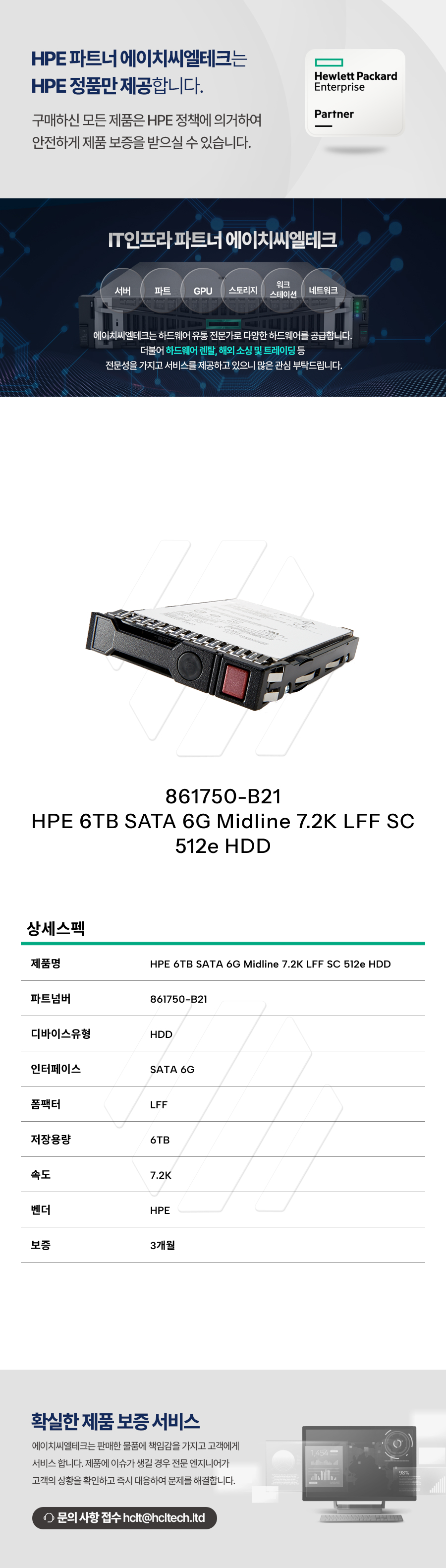 파트 SSD/HDD HPE Gen10~8 6TB 6G 신품 LFF(3.5인치) SATA