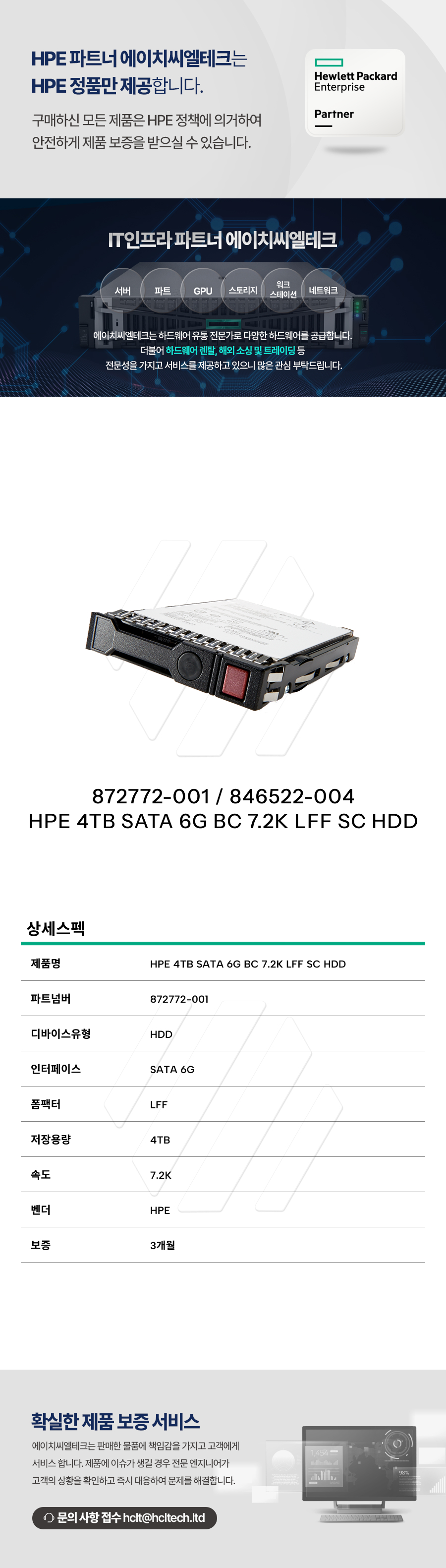 파트 SSD/HDD HPE Gen10~8 4TB 6G LFF(3.5인치) SATA