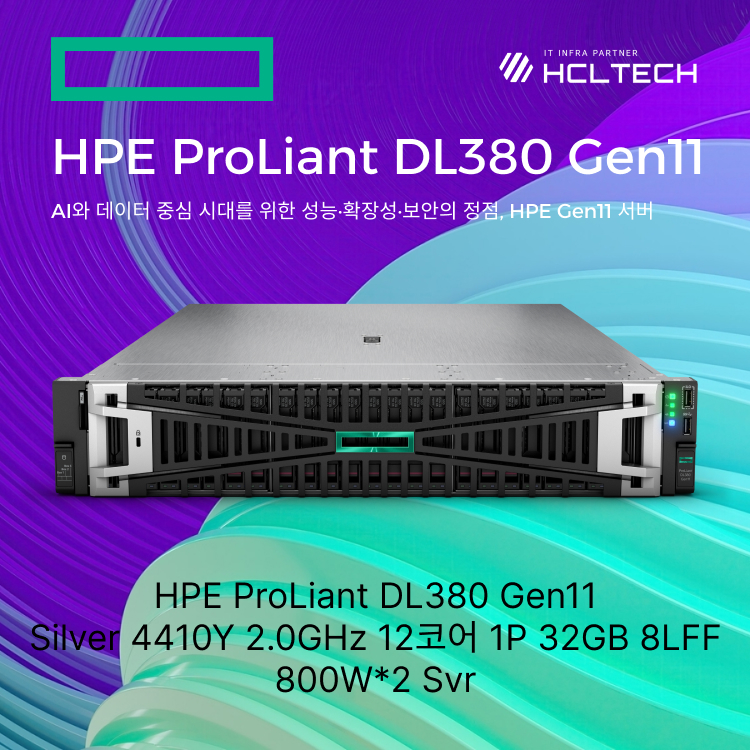 서버 HPE Gen11 DL380 G11 랙(RACK) 2U 1P(소켓) LFF(3.5인치) 8bay 신품
