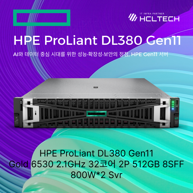 서버 HPE Gen11 DL380 G11 랙(RACK) 2U 2P(소켓) SFF(2.5인치) 8bay 신품