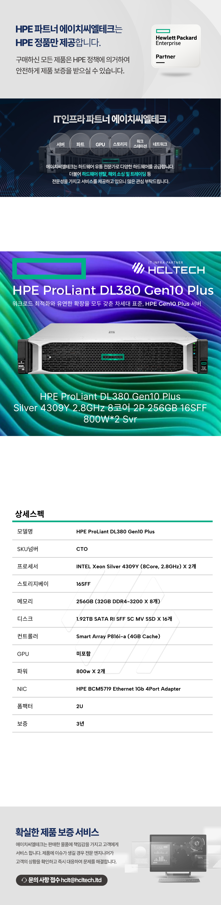 서버 HPE Gen10 Plus DL380 G10 Plus 랙(RACK) 2U 2P(소켓) SFF(2.5인치) 16bay 신품
