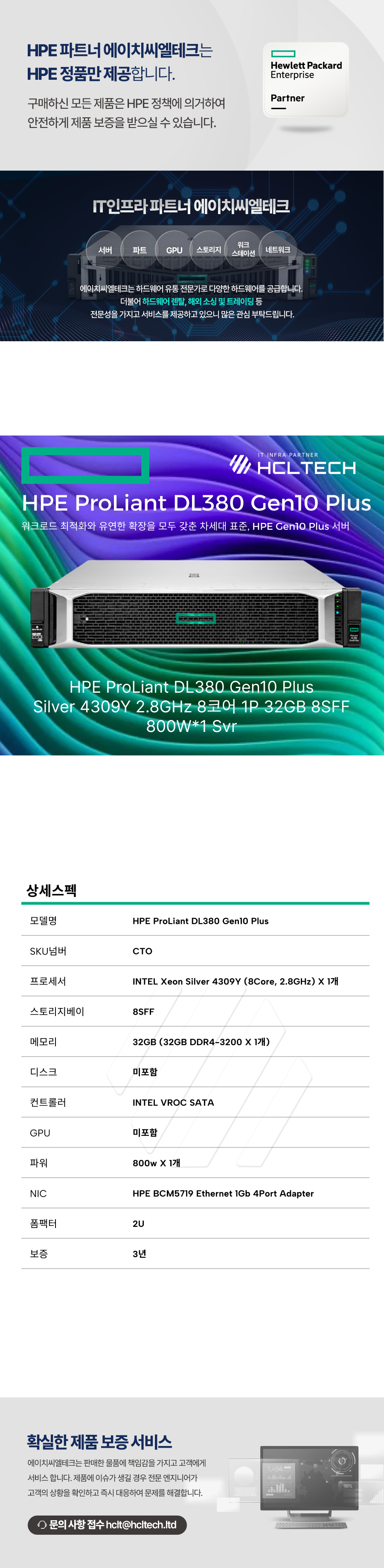 서버 HPE Gen10 Plus DL380 G10 Plus 랙(RACK) 2U 1P(소켓) SFF(2.5인치) 8bay 신품