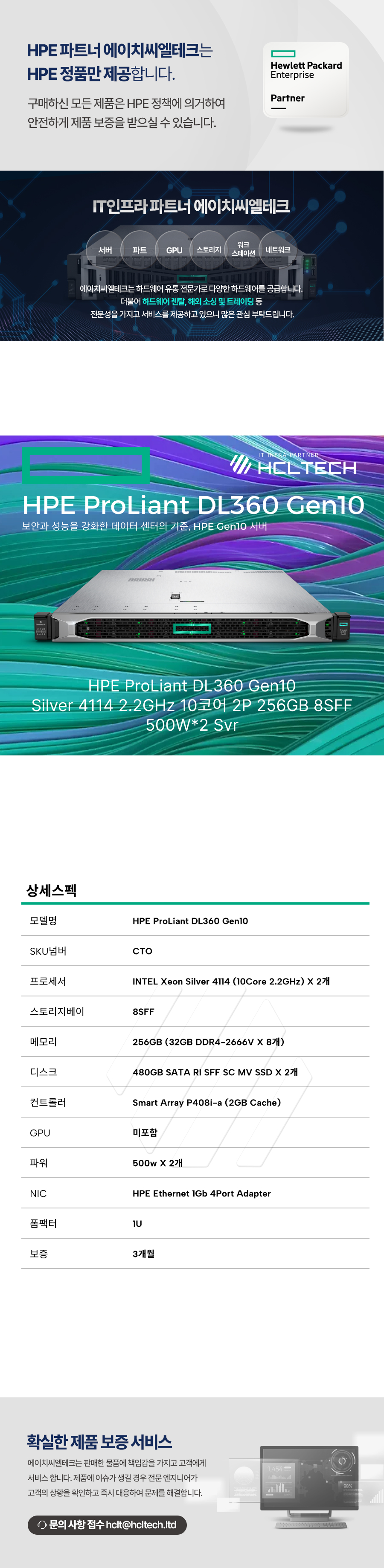 서버 HPE Gen10 DL360 G10 랙(RACK) 1U 2P(소켓) SFF(2.5인치) 8bay 중고