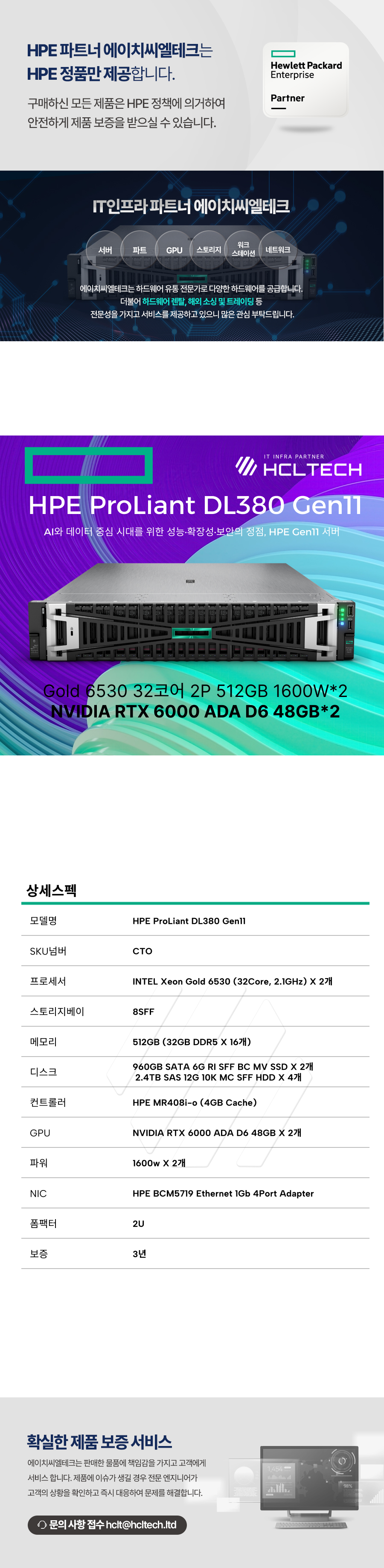 서버 HPE Gen11 랙(RACK) 2U 2P(소켓) SFF(2.5인치) 8bay 신품