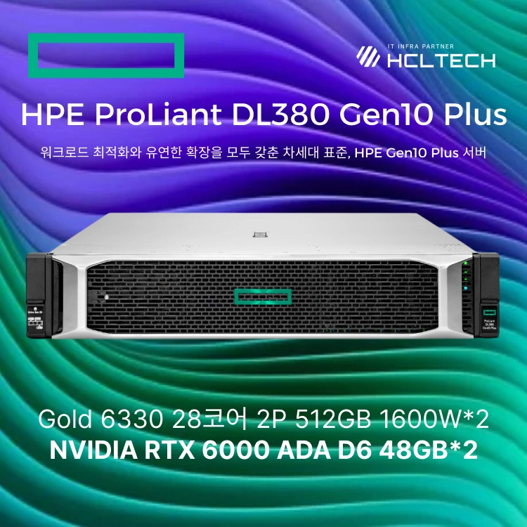 HPE ProLiant DL380 Gen10 Plus Gold 6330 28코어 2P 512GB 1600W*2 NVIDIA RTX 6000 ADA D6 48GB*2